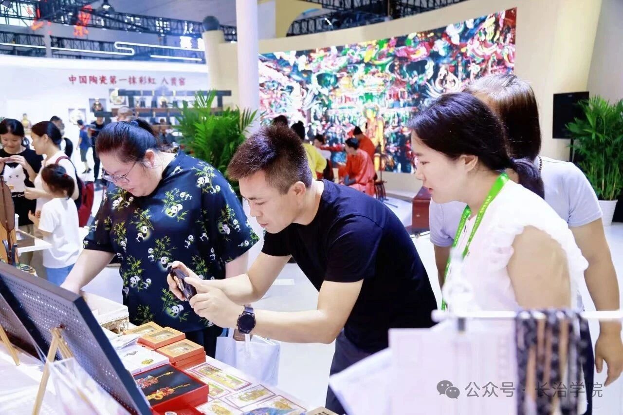 本次文博会,我校是唯一以独立展位参展的高校,展品主要是师生在日常教学科研实践中开发的文创产品,涵盖校园文创、武乡红色文创、古建文创等主题,多方位展示了我校在推进应用转型过程中创新人才培养方式、服务长治文化强市建设的丰硕成果。这些文创产品既体现了上党文化的厚重,也融入了现代理念和设计巧思,吸引了大量参展观众驻足欣赏,争相拍照留念。